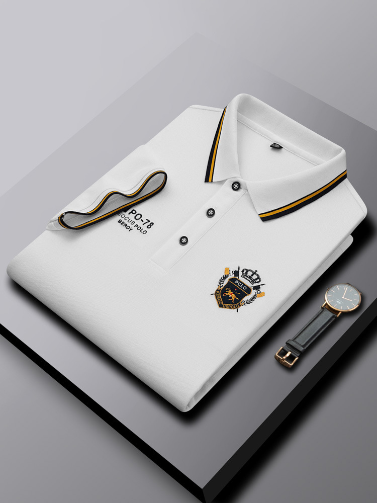 Contrast Trim Embroidered Badge Business Casual Polo Shirt